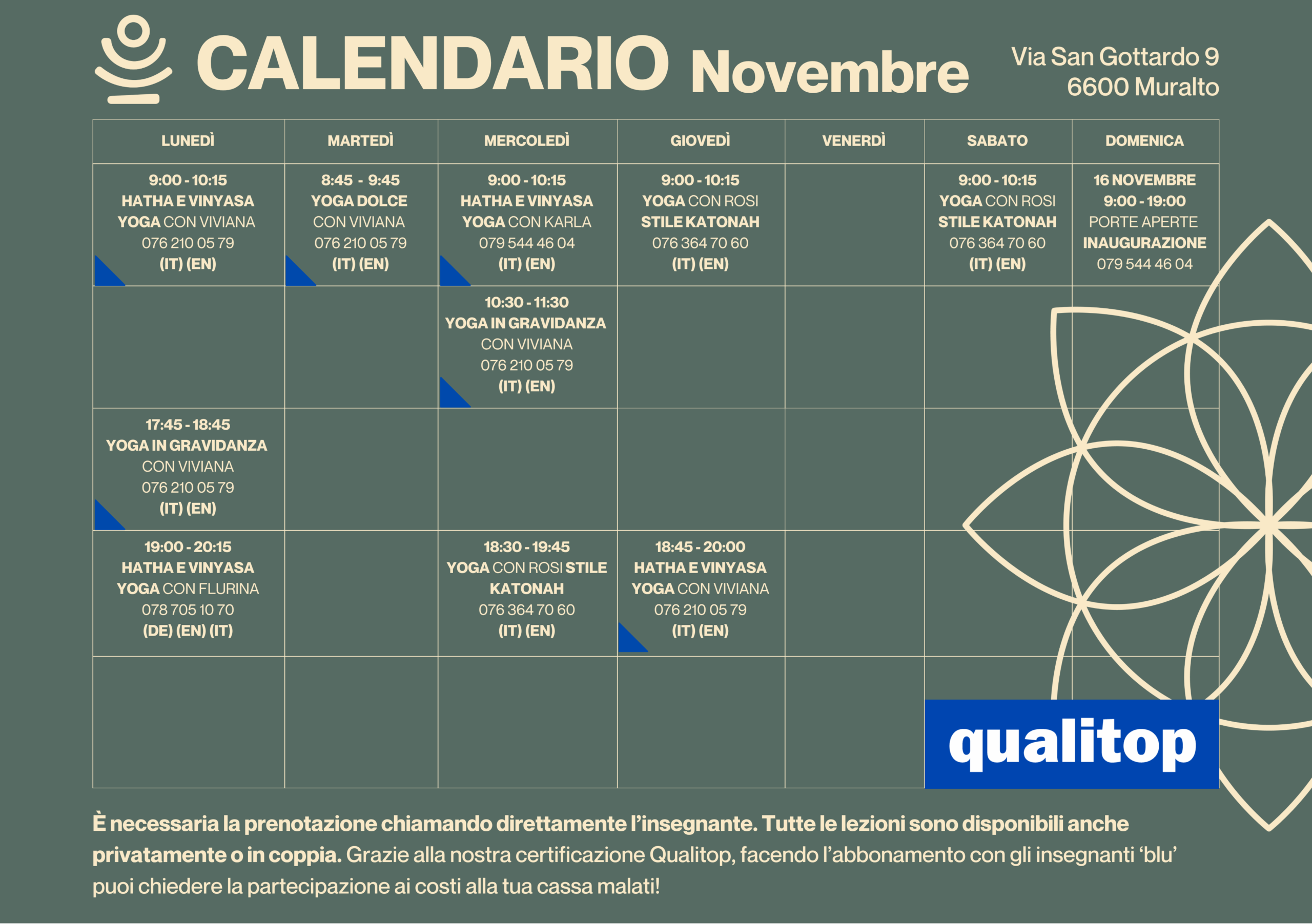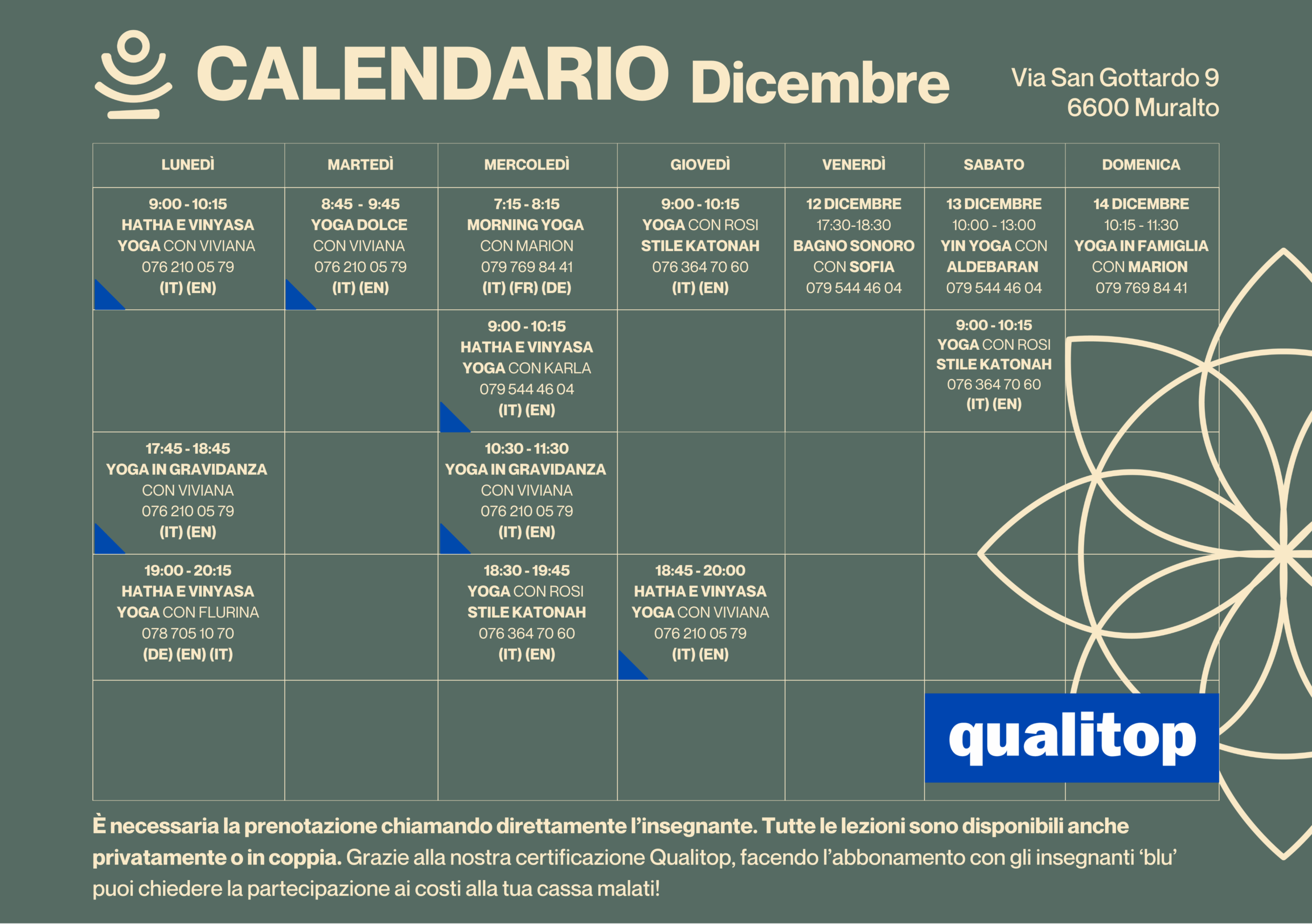Che tu scelga i nostri corsi o uno (o più!) degli eventi speciali, ti aspettiamo per vivere insieme un dicembre pieno di equilibrio, cura e connessione.